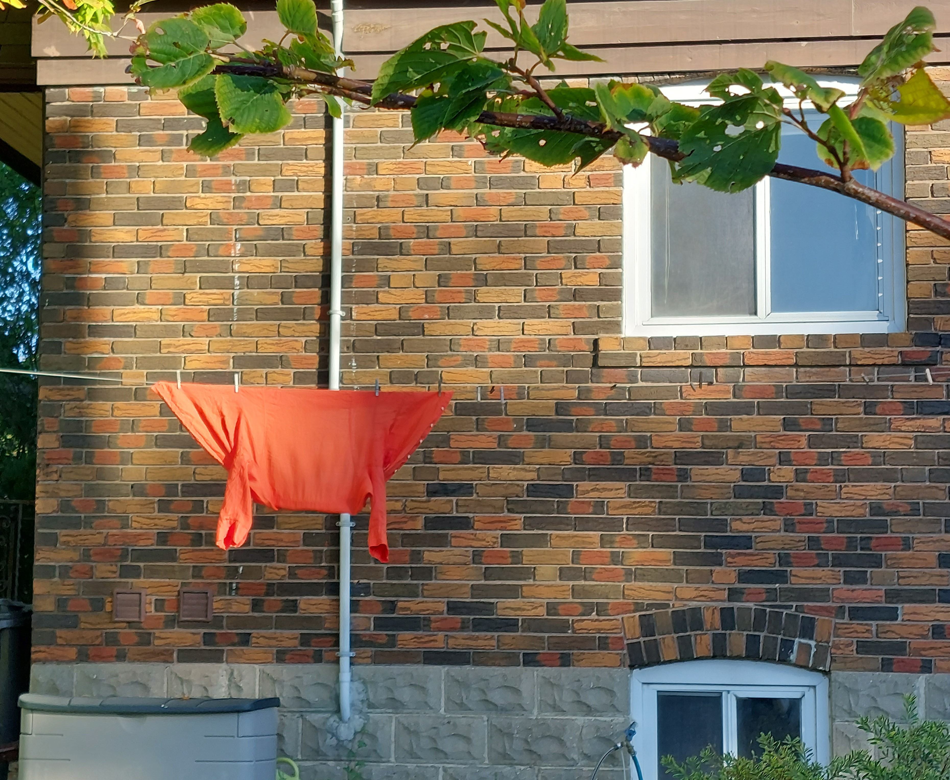 This year, here is a picture of my only orange piece of clothing that I just hung up outside of our house. Many things happened in the past twelve months.